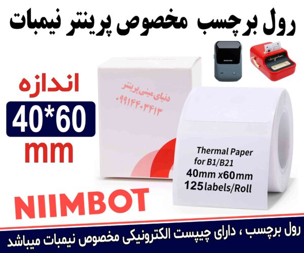 رول لیبل اصلی نیمبات (Niimbot) سایز 60*40 | اورجینال با چیپست هوشمند | مخصوص پرینتر B21 و B3S